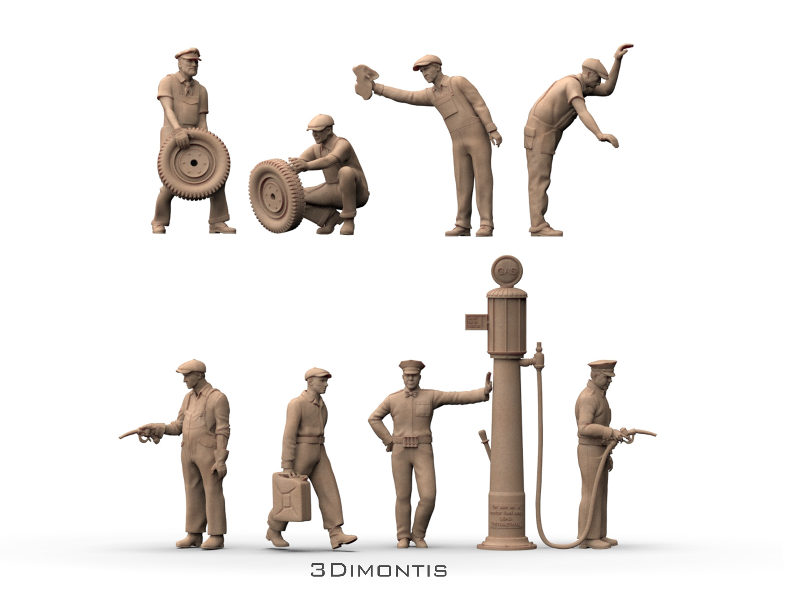Gas station - Worker checking engine under the hood - various scales