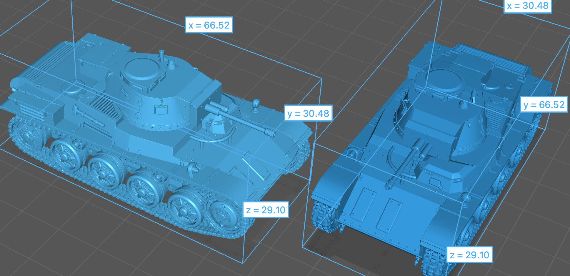 Vehicles in scales 1:56/48/43/35 are scaled down from the 1:56 battle scale (28mm), meaning they may not be an exact representation of the vehicle and some parts may be scaled down/exaggerated.