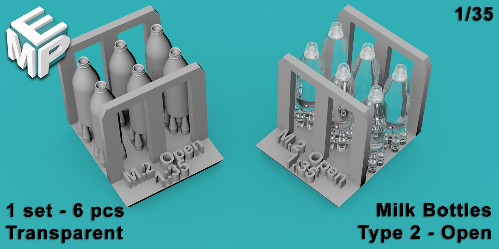Butelki mleka 1l - typ 2 - otwarte - 6 sztuk - 1:35