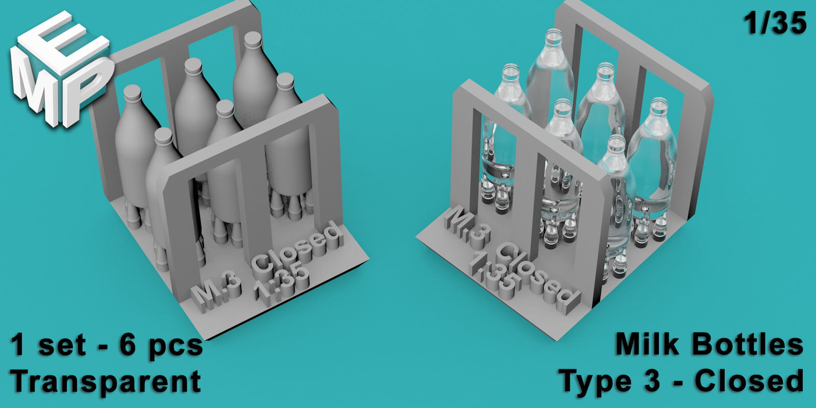 Butelki mleka 1l - typ 3 - zamknięte - 6 sztuk - 1:48