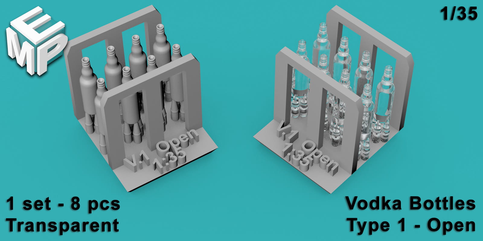 Butelki wódki 0,5l - typ 1 - otwarte - 8 sztuk - 1:48