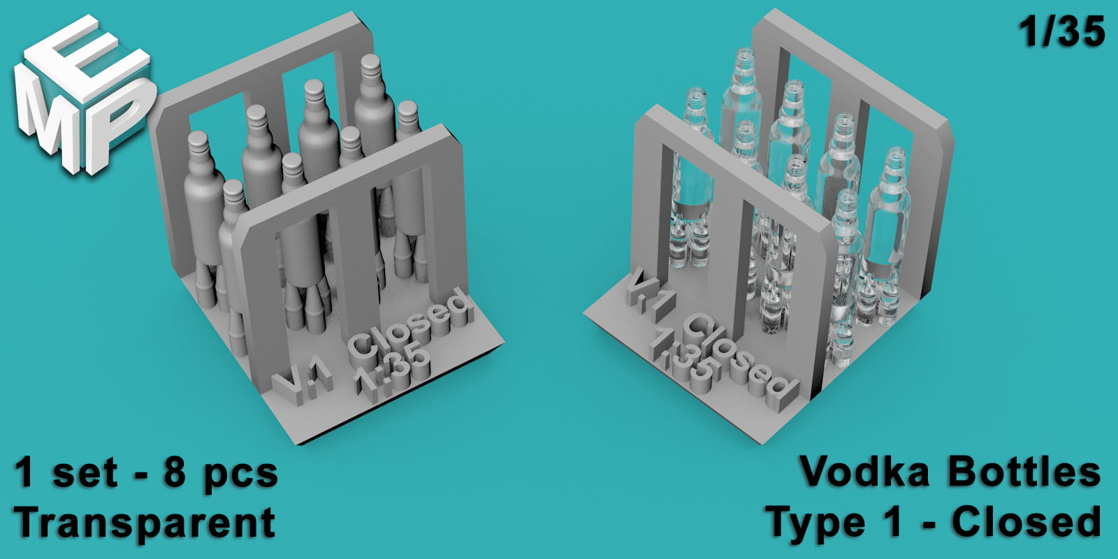 Butelki wódki 0,5l - typ 1 - zamknięte - 8 sztuk - 1:35
