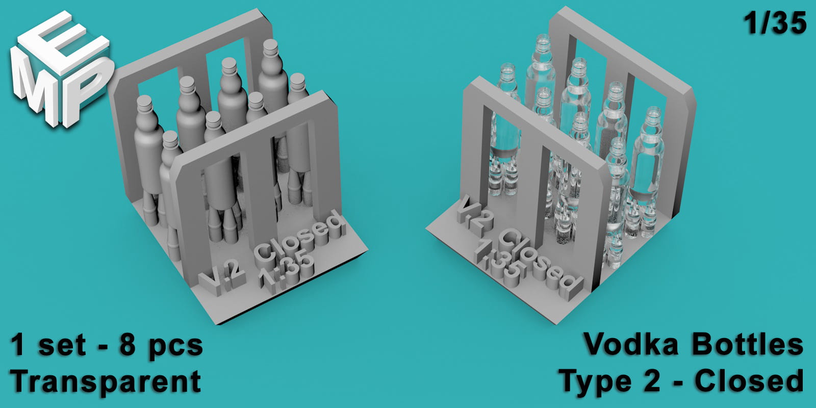 Butelki wódki 0,5l - typ 2 - zamknięte - 8 sztuk - 1:48