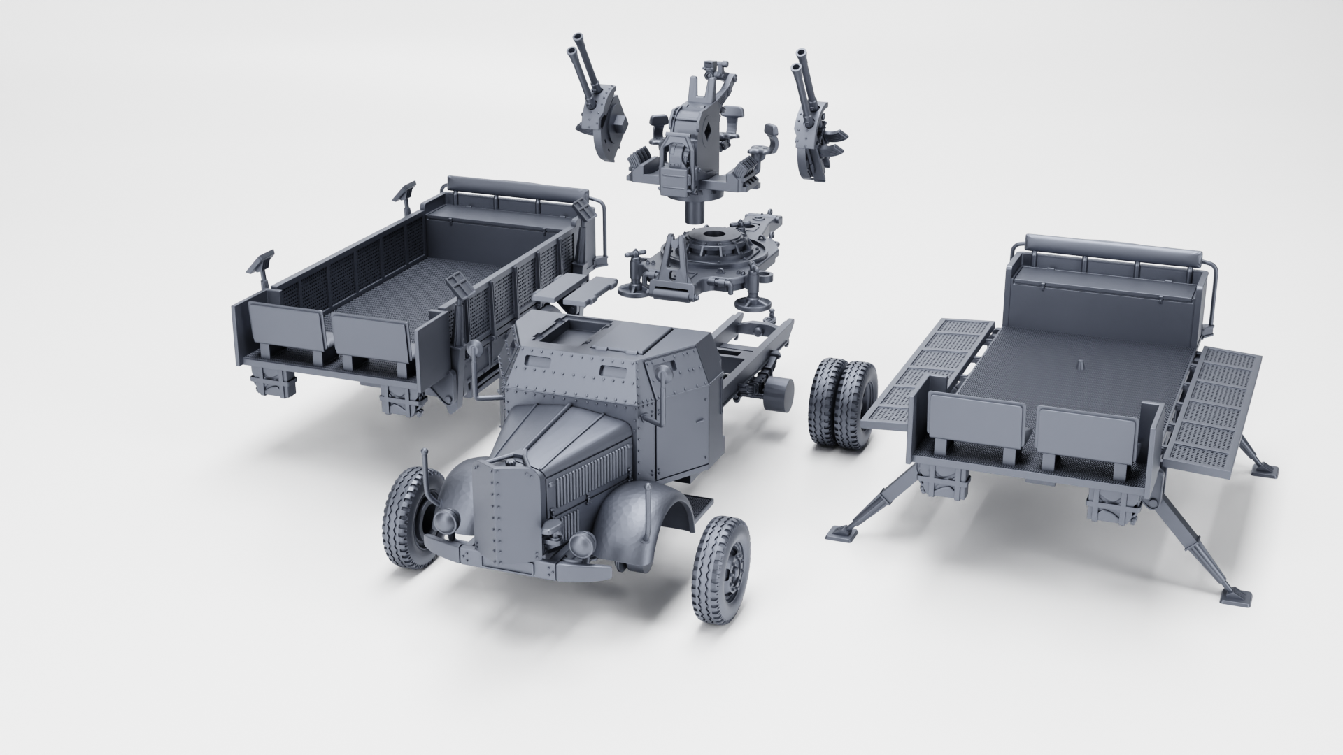 Mercedes L4500A (Flakwagen) z działem 2cm Flakvierling 38 - otwarty właz - poz. bojowa